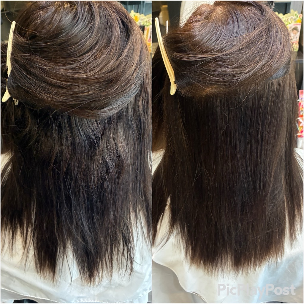 今回は白髪のリタッチと矯正も根本のリタッチと中間から毛先はメンテナンストリートメントで施術させていただきました。